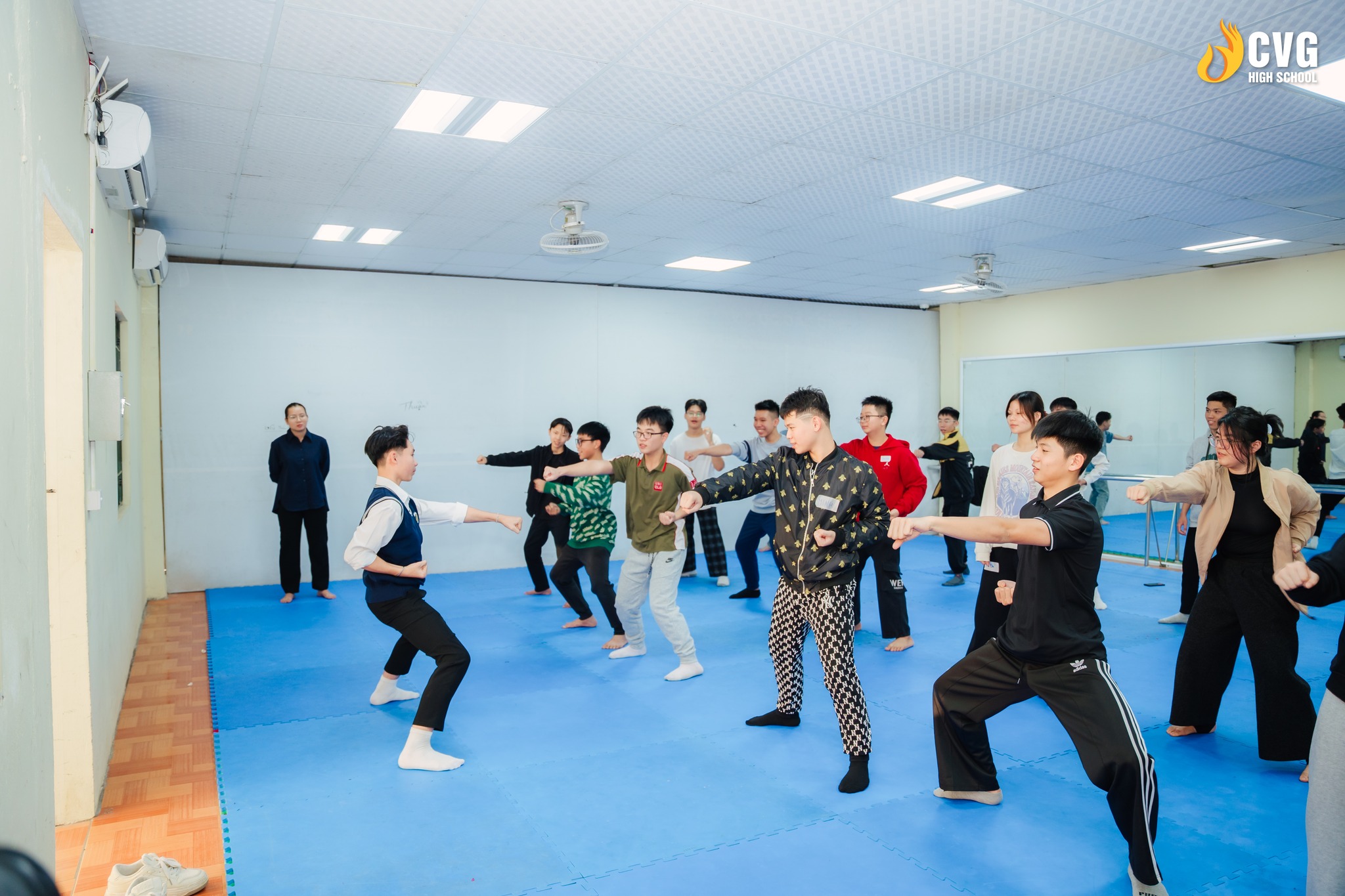 Tiếp nối là hoạt động trải nghiệm CLB Thể thao và Võ thuật, nơi các con được rèn thể lực, tinh thần kỷ luật và tinh thần đội nhóm. Không khí sôi nổi và năng lượng tích của từng bạn Học sinh qua hai hoạt động trải nghiệm đã khẳng định: để tự tin bước vào tương lai, con không chỉ cần kiến thức mà còn cần nhân cách được nuôi dưỡng từ gốc rễ, một nội lực vững vàng và một khát vọng đủ lớn. Đây chính là giá trị cốt lõi của triết lý giáo dục Thân – Tâm – Tuệ mà Nhà trường muốn lan tỏa đến từng Học sinh.